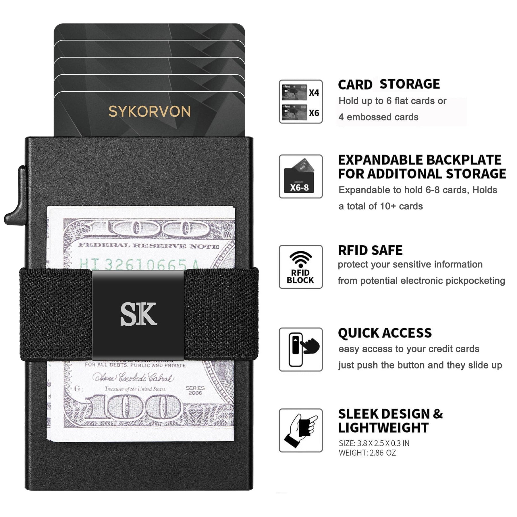 • Ample Space for Multiple Cards: Pop up card holder to 6-7 cards, and utilize the included metal plate secured with the band outside for an additional 5+ card or ID storage. The cash strap is designed with a rubber face to prevent your cash from sliding out, providing secure storage for your essentials.