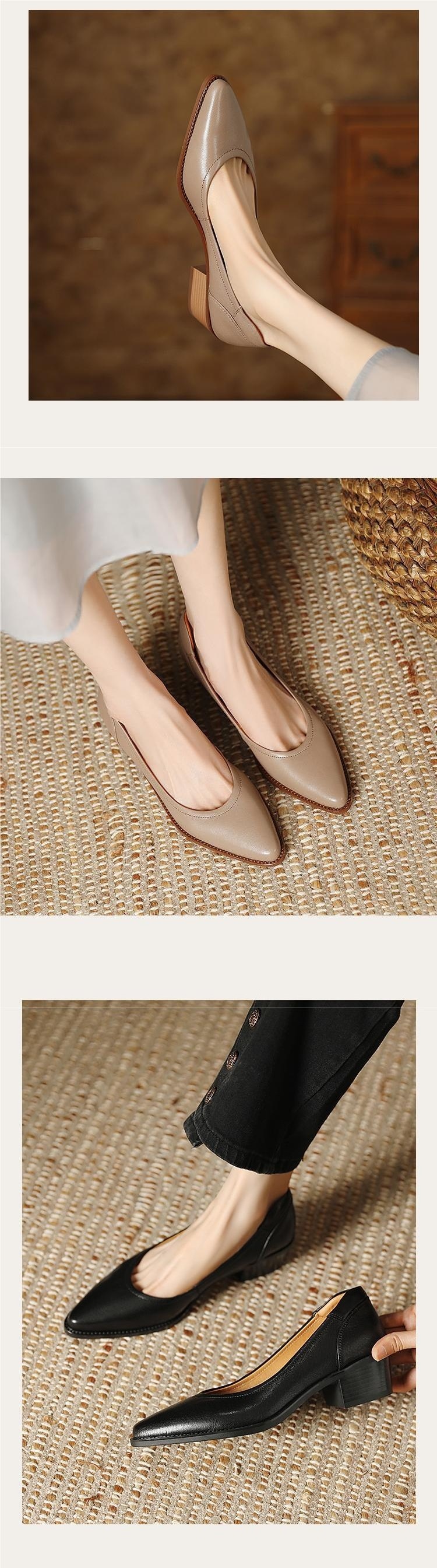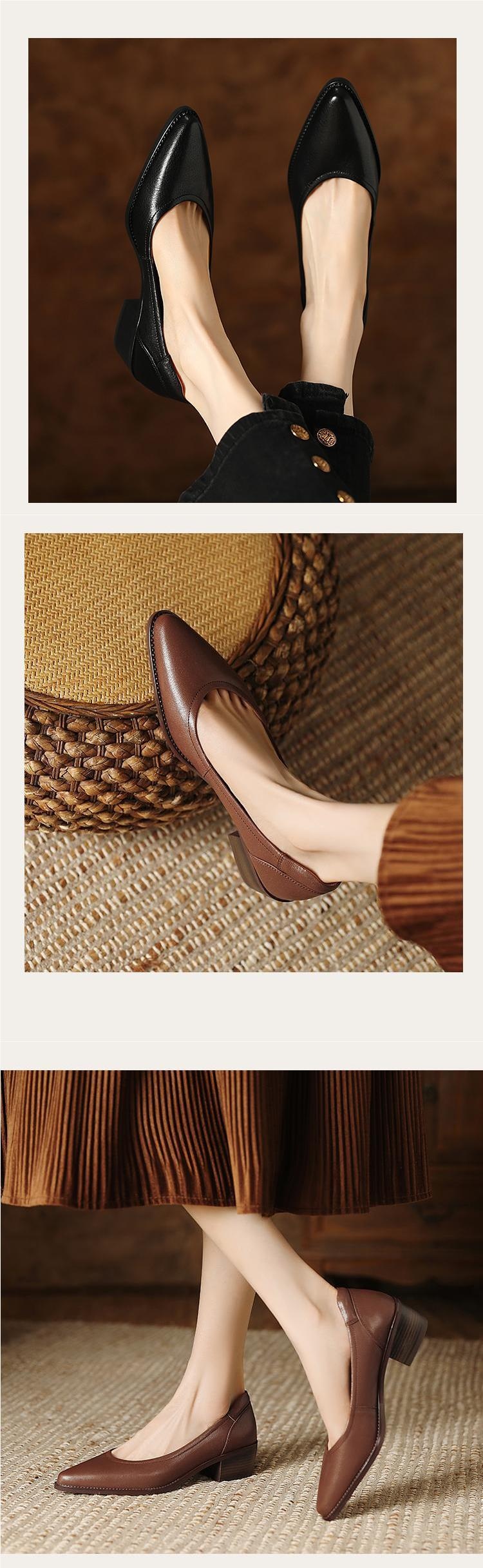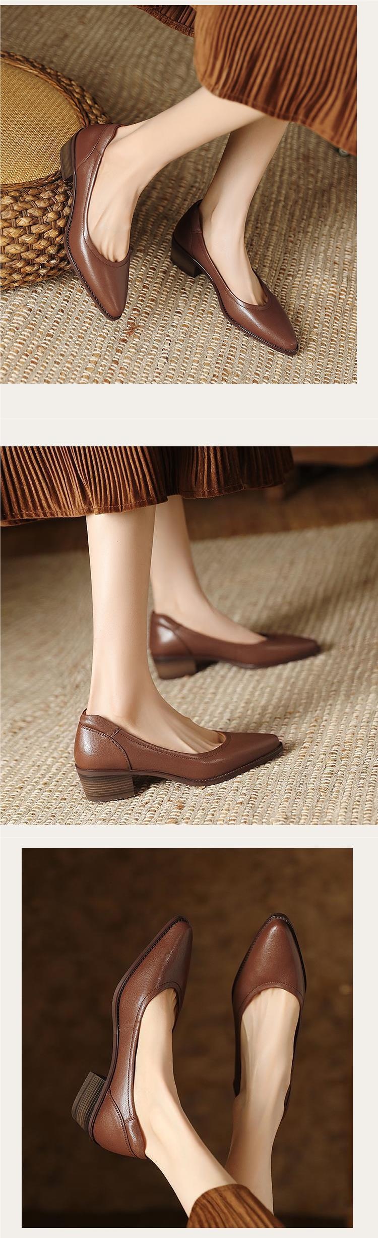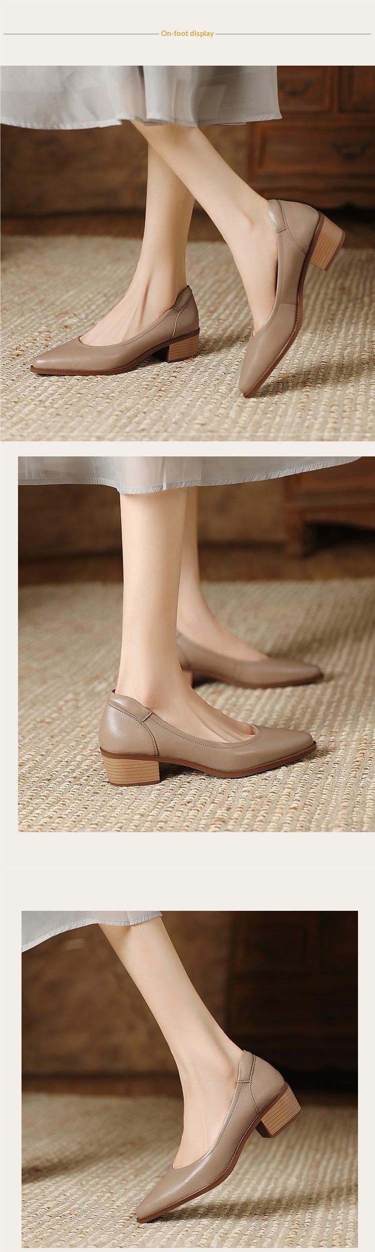 Womens French-style Pointed-toe Low-cut Mid-heel Leather Shoes