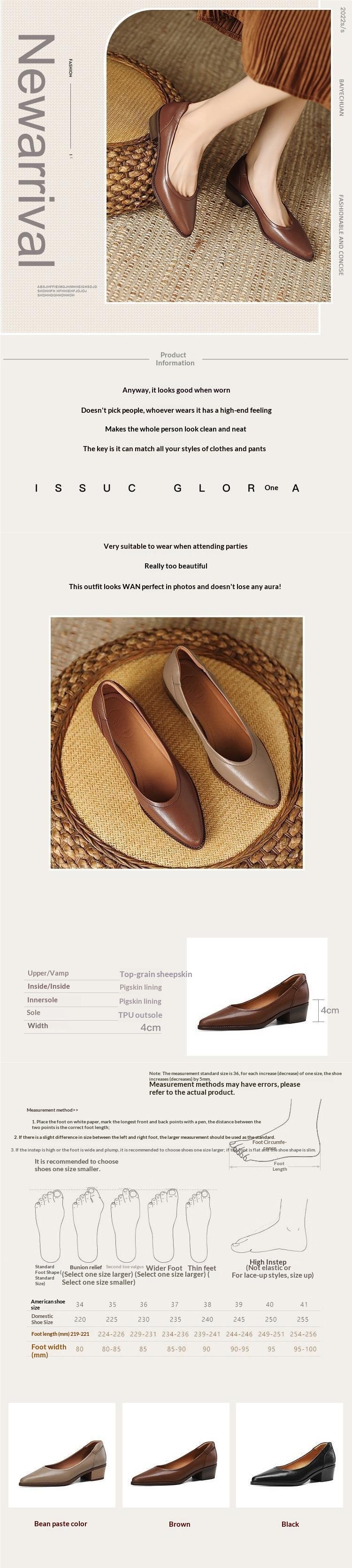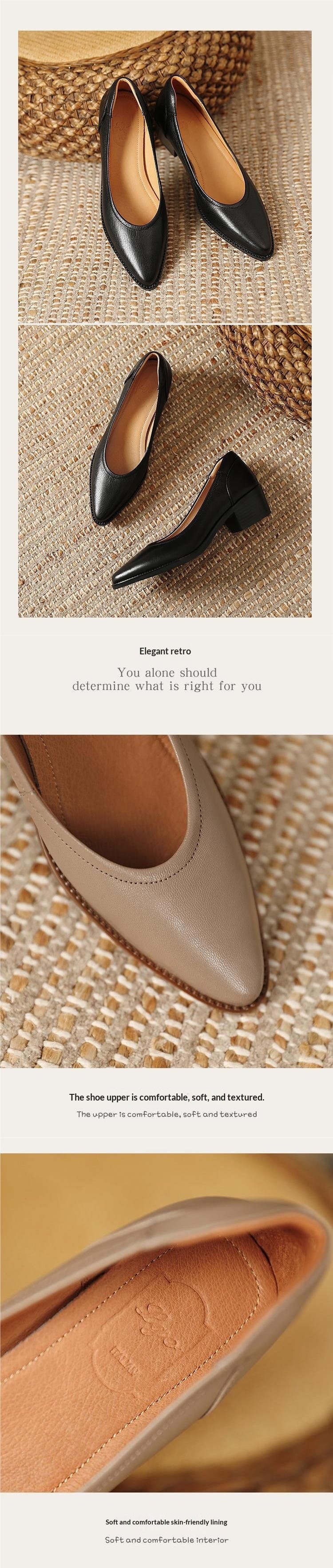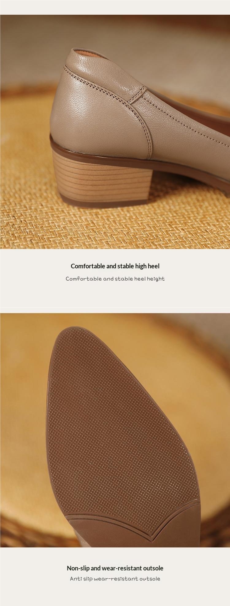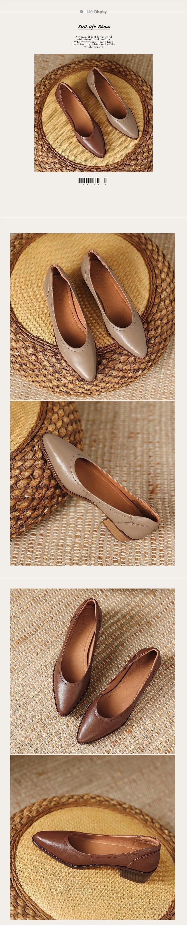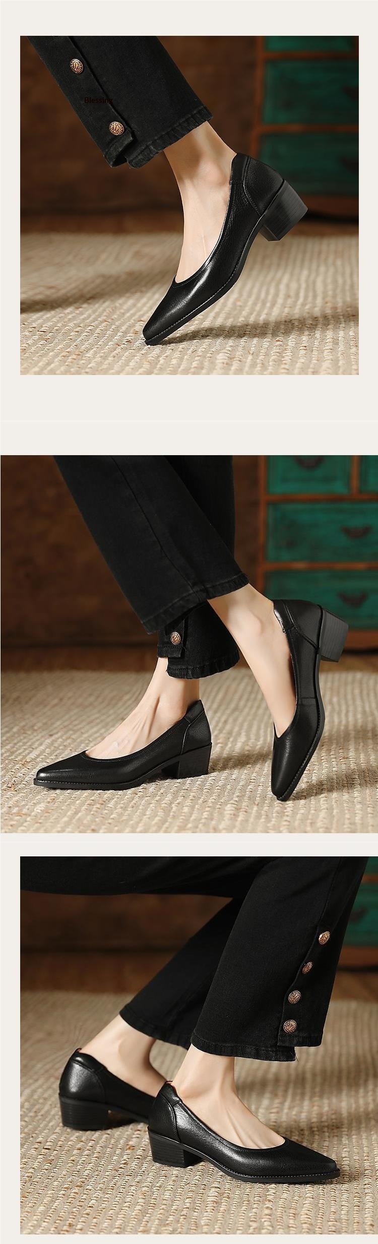 Womens French-style Pointed-toe Low-cut Mid-heel Leather Shoes
