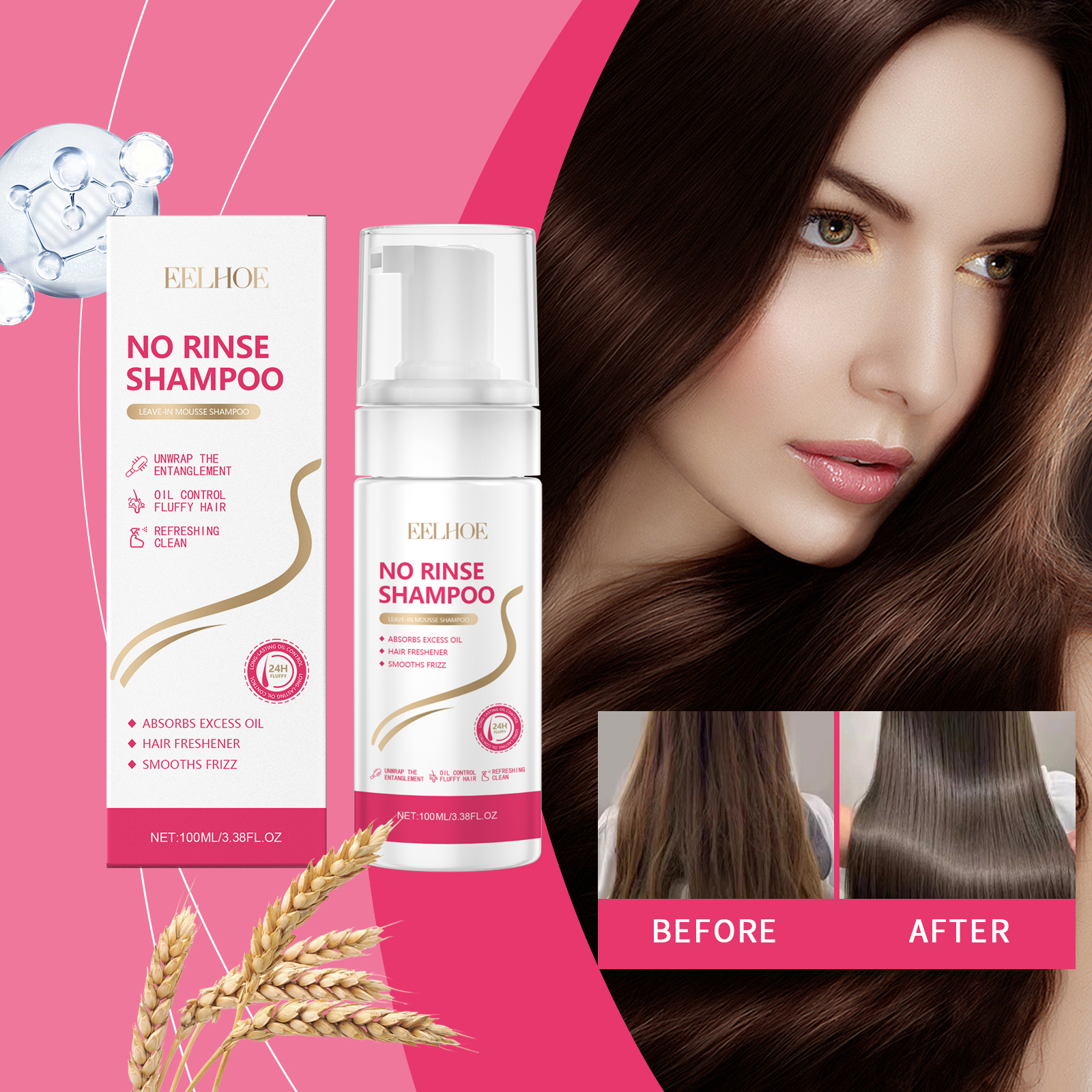 Our water-free shampoo mousse contains oat extract, cocamidopropyl betaine, and sodium hyaluronate. It can easily solve the cleaning needs, provide deep nutrition to the hair, absorb excess oil, and keep the hair fresh. Its use is very simple: 1. Shake the product bottle well to ensure that the ingredients are fully mixed; 2. Squeeze an appropriate amount of mousse into the palm of your hand and gently apply it to dry hair and scalp; 3. Gently massage the scalp and hair with your fingertips to help clean and moisturize; 4. Gently dry your hair with a clean towel and let it dry. Easy to clean, no water required, time-saving and efficient; oat extract nourishes the hair and makes it soft and smooth.