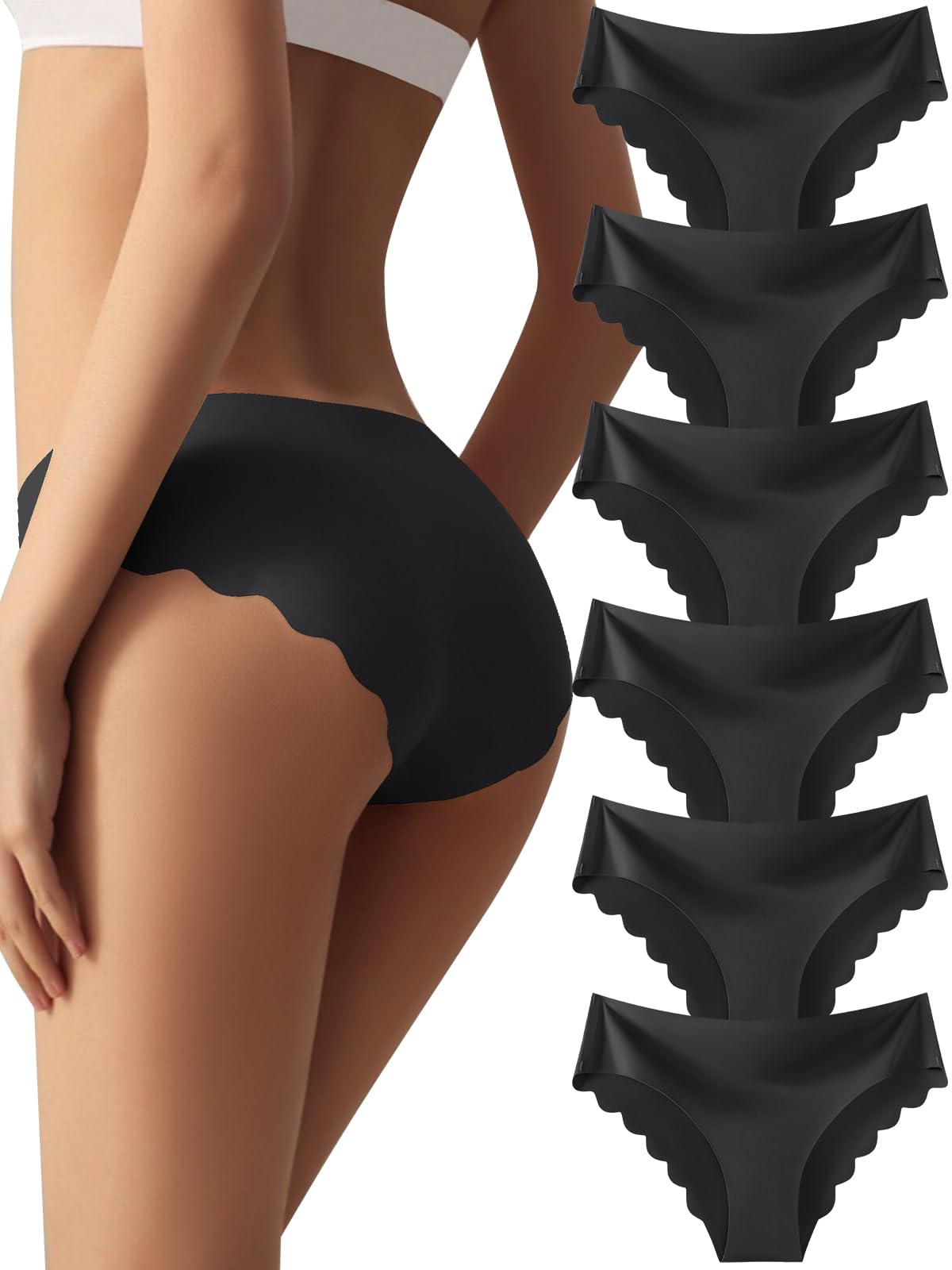 Women’s Seamless Underwear, No Show Bikini Briefs, Soft Stretch Panties, Invisibles Underwear for Women, 6 Pack
