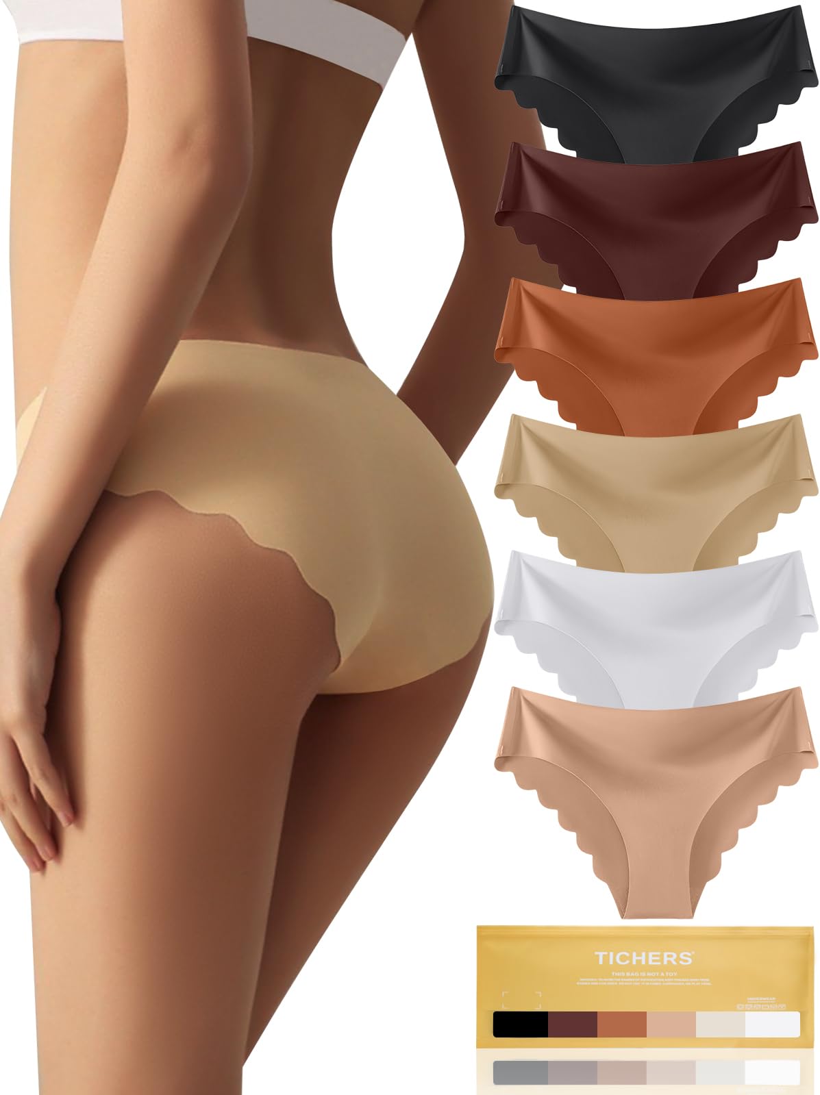 tichers Women’s Seamless Underwear, No Show Bikini Briefs