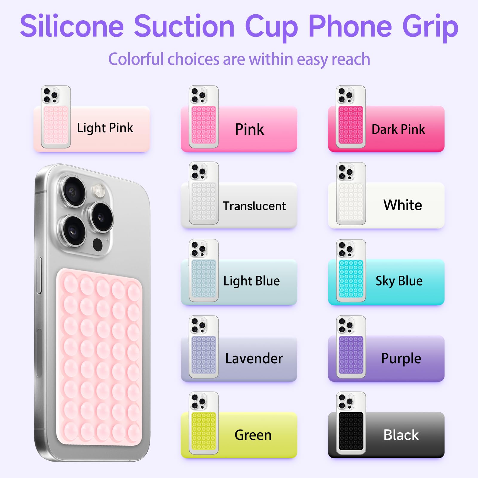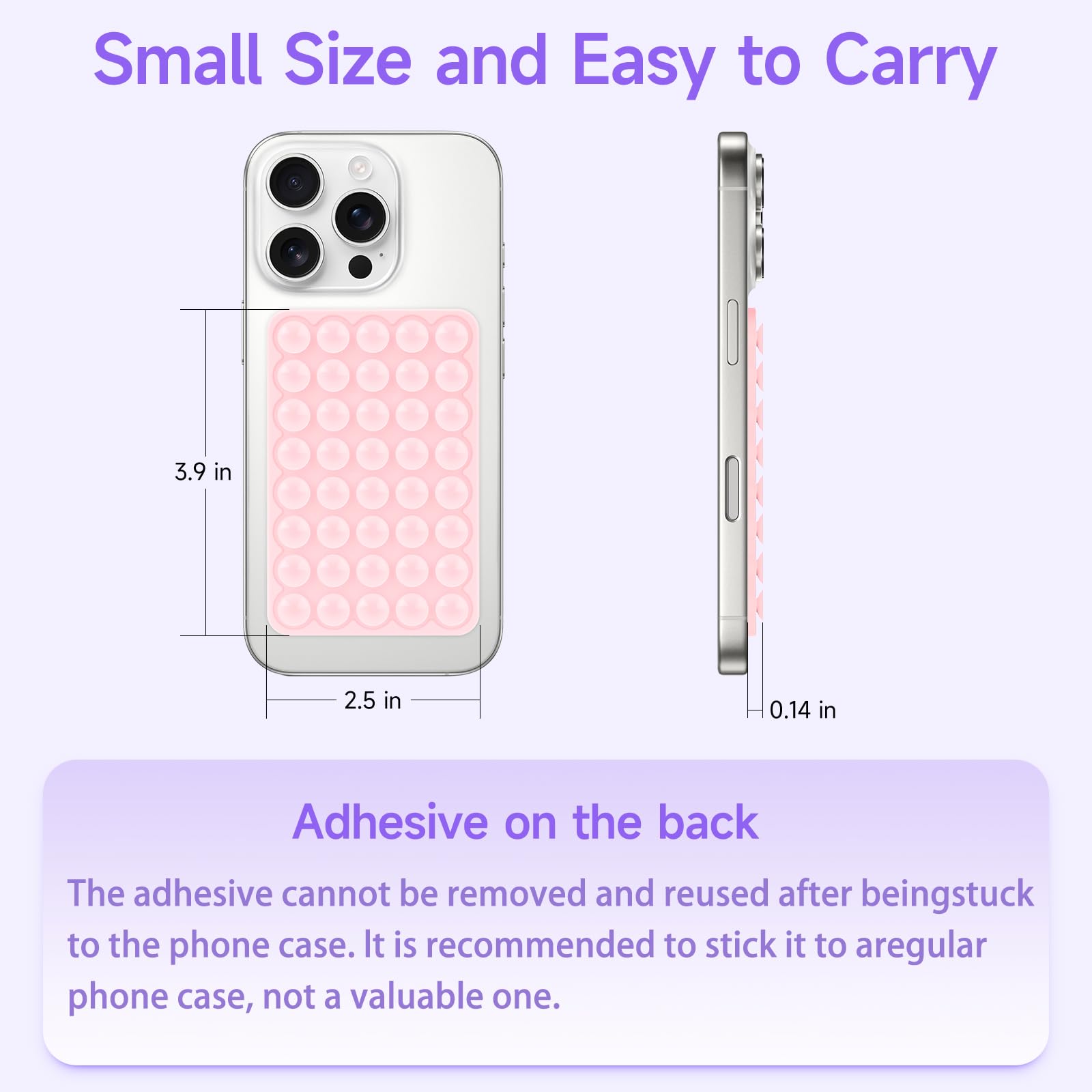 • Back of Phone Suction Grip: Remove the adhesive film on the phone suction cup and stick it on the phone case. You can then fix the phone on any smooth surface, which is very convenient. (The phone suction cup cannot be removed and reused after being attached to the phone case. It is recommended to attach it to a regular phone case, not a valuable one.)