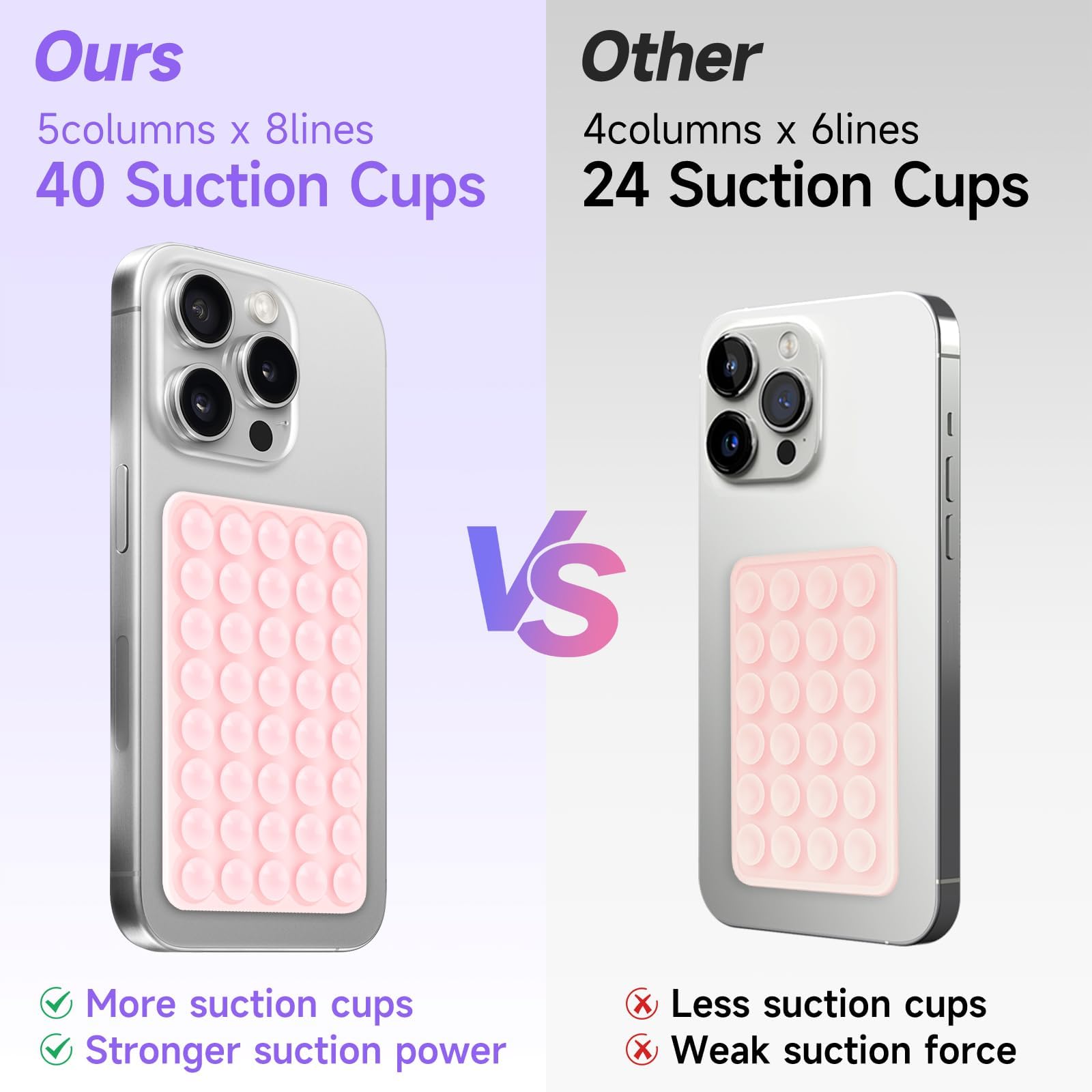 • Strong Adsorption: The inspiration of the silicone phone suction case comes from the adhesive force of the octopus. Each suction cup phone mount have 40 independent suction cups providing a stronger and more stable suction force, so you don't have to worry about your phone falling during use.